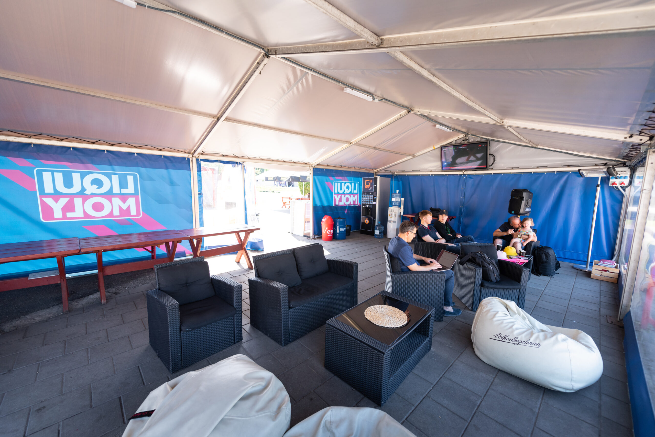 Jums galime pasiūlyti išsinuomoti erdvią lauko palapinę arba stalus su skėčiais esančius prie pat kartingų trasos. Stalų nuomos kaina sutartinė.